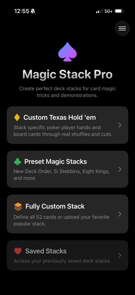 Magic Stack Pro is a useful utility app for magicians and card enthusiasts alike. It reverse engineers a flawlessly stacked deck through multiple real shuffles and cuts.